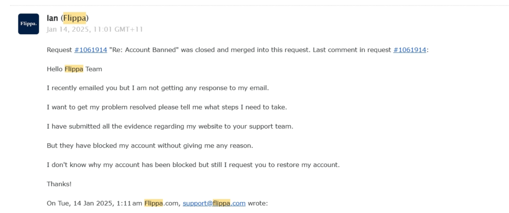 Unfortunately, we have banned your account. We do ban accounts from time to time, and this will relate to a breach or perceived breach of Flippa’s Terms of Service. We do this vigilantly as a way of maintaining and protecting a global and vibrant marketplace.
